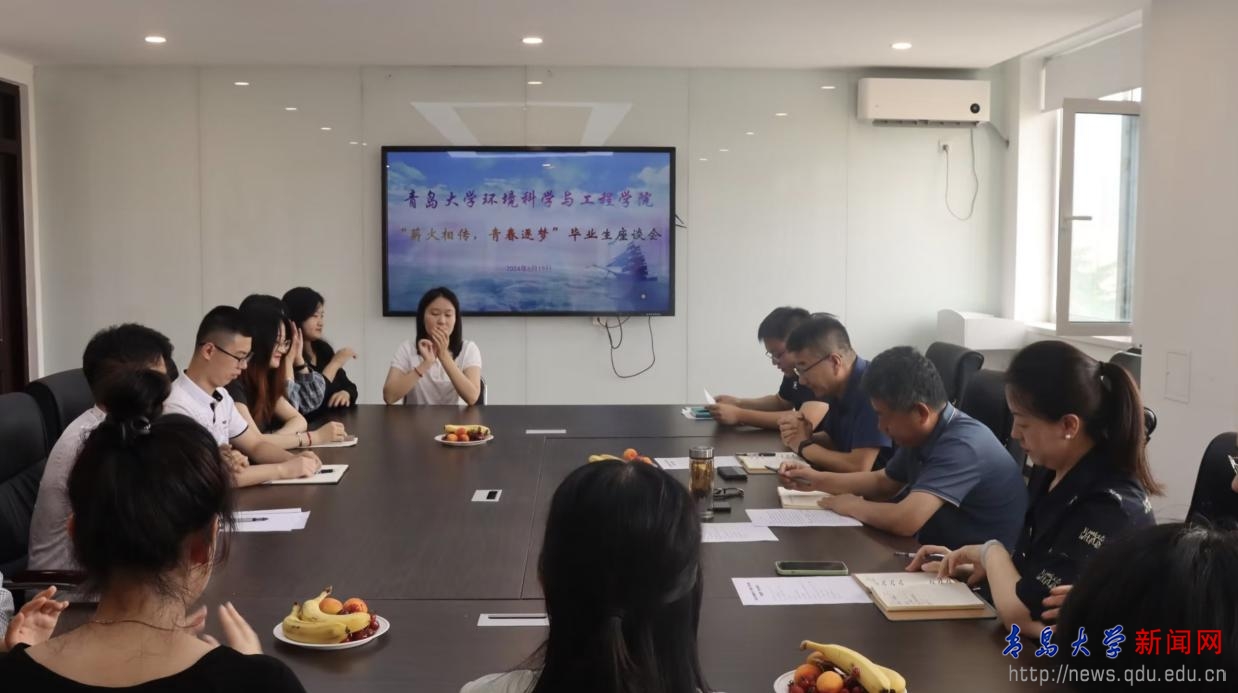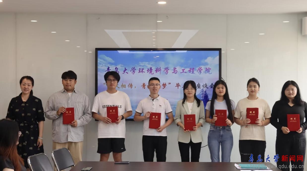 新闻网讯 近日,环境科学与工程学院在博观楼429会议室举行“薪火相传,青春逐梦”毕业生代表座谈会暨校友联络员聘任仪式。学院党委书记张作祥、院长佘希林、党委副书记孙竹媛、辅导员尹昊以及毕业生代表参加会议,会议由尹昊主持。