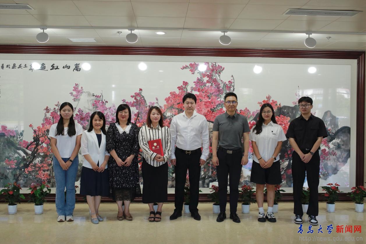 蔡颖雯向朴贤知颁发教育部涉外法治人才协同培养创新基地实践导师聘书。