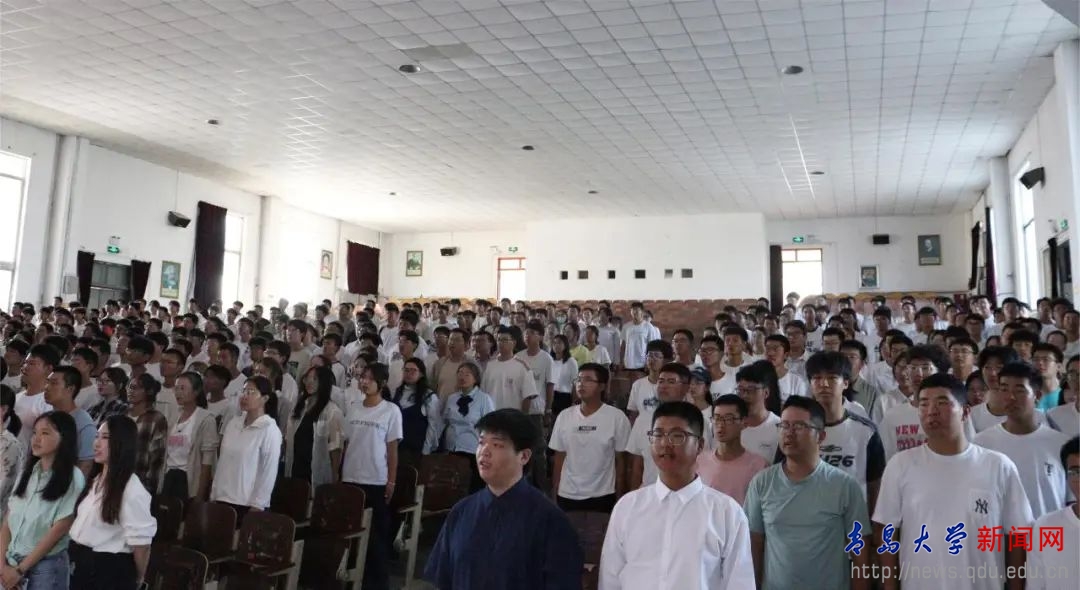 在雄壮的国歌声中,新生开学典礼拉开序幕。