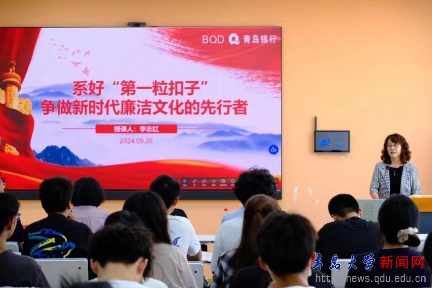 新闻网讯 9月26日下午,“清风拂校园 廉洁育新苗”清廉金融文化宣讲在金家岭校区3号实验楼423举行。青岛金融监管局纪委办公室主任王芹、青岛新闻网财经频道总监钟世泉、市纪委监委派驻青岛银行纪检组组长李志红、经济学院党委副书记于文洁、副院长吕学梁出席活动,经济学院学生代表参加活动。