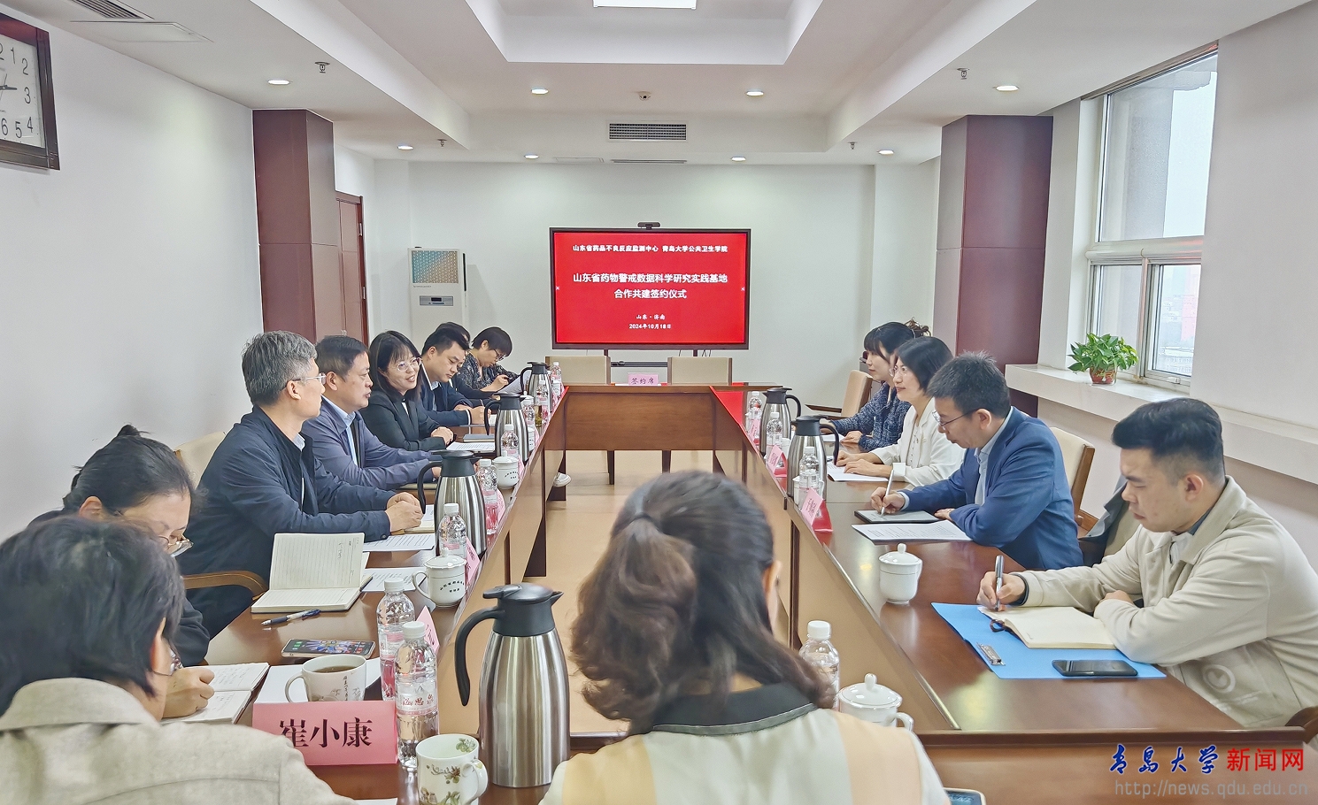 新闻网讯 山东省药品不良反应监测中心与我校公共卫生学院共建“山东省药物警戒数据科学研究实践基地”签约仪式近日在山东省药品监督管理局顺利举行。山东省药品监督管理局副局长林炳勇、省药品不良反应监测中心主任李霞、相关业务科室负责人,以及我校公共卫生学院党政主要负责人、骨干教师代表共同出席签约仪式。