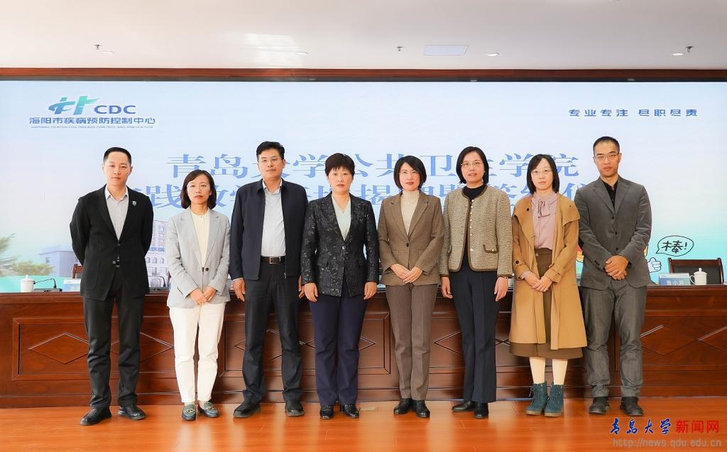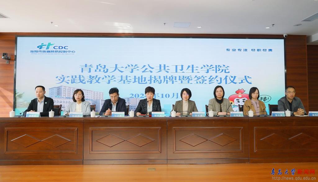 新闻网讯 近日,公共卫生学院与海阳市疾病预防控制中心共建实践教学基地签约揭牌仪式在海阳市疾病预防控制中心顺利举行。海阳市委常委、统战部部长、副市长倪永妮,海阳市卫健局党组书记、局长马占胜,海阳市疾控中心党支部书记、主任姜晓明;公共卫生学院党委书记贾依娜、副院长沈晓丽;以及海阳市疾病预防控制中心相关科室负责人,公共卫生学院系主任、青年骨干教师、学生代表等共同参加签约揭牌仪式。签约揭牌仪式由马占胜主持。