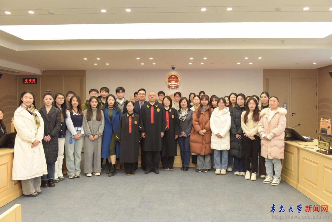 新闻网讯 12月19日下午,青岛海事法院首次在青岛中央法务区涉外法务区第一智慧法庭公开开庭审理涉外海事案件。法学院院长蔡颖雯带领法学院30名师生走进第一智慧法庭旁听庭审活动,感受庭审魅力,提升法学素养和实践能力。