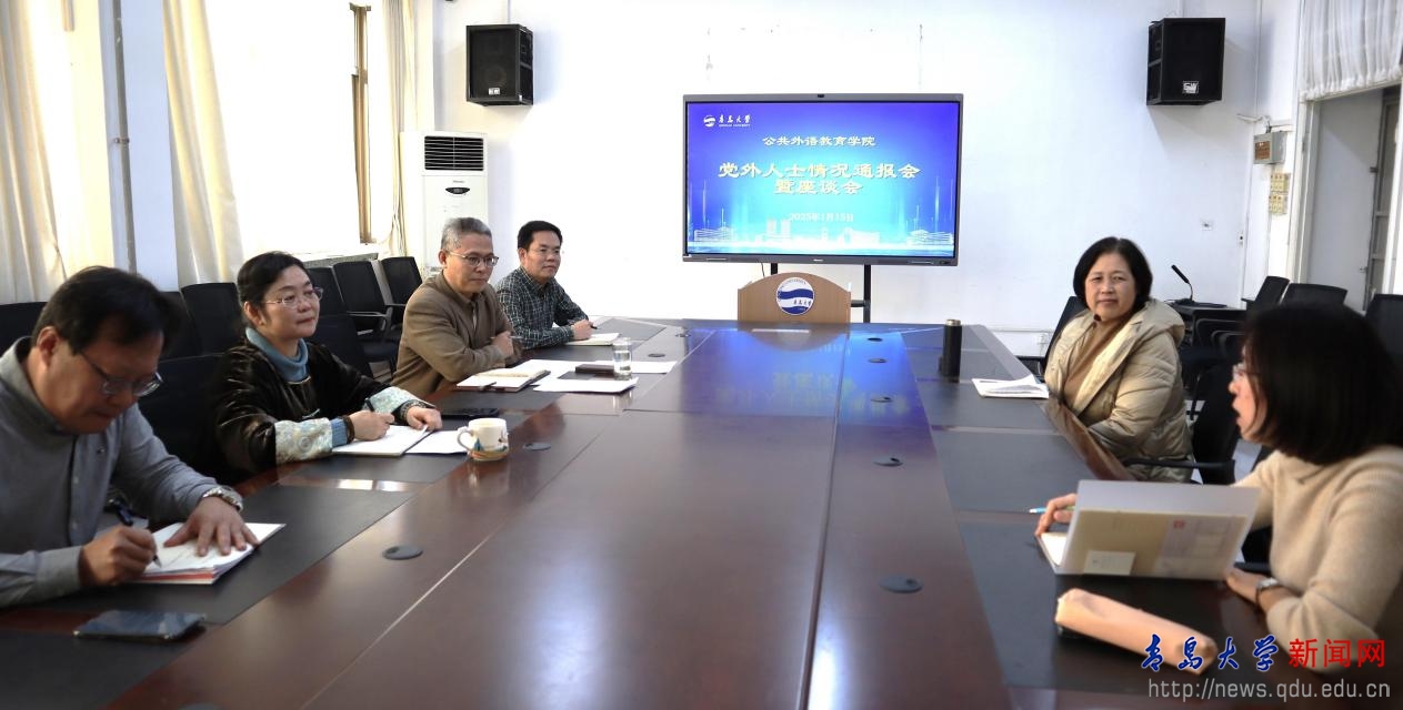 新闻网讯 1月15日上午,公共外语教育学院在睿思楼202会议室召开党外人士情况通报会暨座谈会。学院领导班子及民主党派、无党派人士代表参加会议。