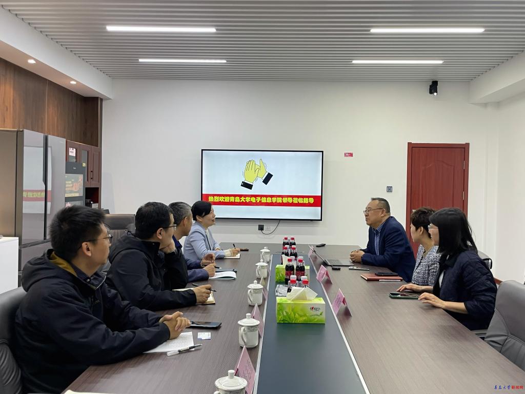 新闻网讯 4月11日,电子信息学院党委书记孙丽娜、党委副书记刘孝群、副院长姚钊、院长助理于腾及毕业生辅导员潘志奎前往青岛康伦机电开展“访企拓岗”活动。青岛康伦机电董事长许富贵及企业相关业务部门负责人接见了学院师生一行。