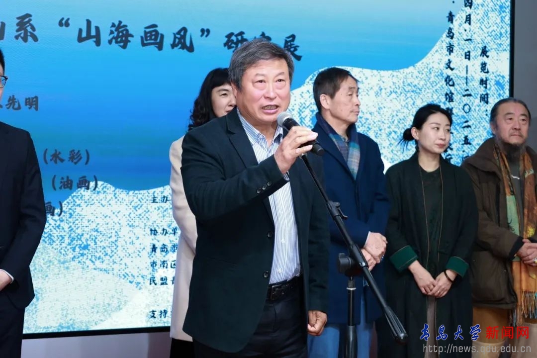 绘画系主任亓文平主持研讨会,王绍波、窦凤至、王迪、昌隽如,王震宙、康颂美术文具用品宜兴有限公司李磊女士、艺术学院史论系教授黎晟等嘉宾以及参展画家先后发言,研讨会聚焦青岛本土文化资源转化、艺术语言创新及教学体系构建等问题,深入探讨“山海画风”的理论内涵与实践路径,旨在凝练青岛艺术标识,为城市文化品牌建设提供学术支撑。