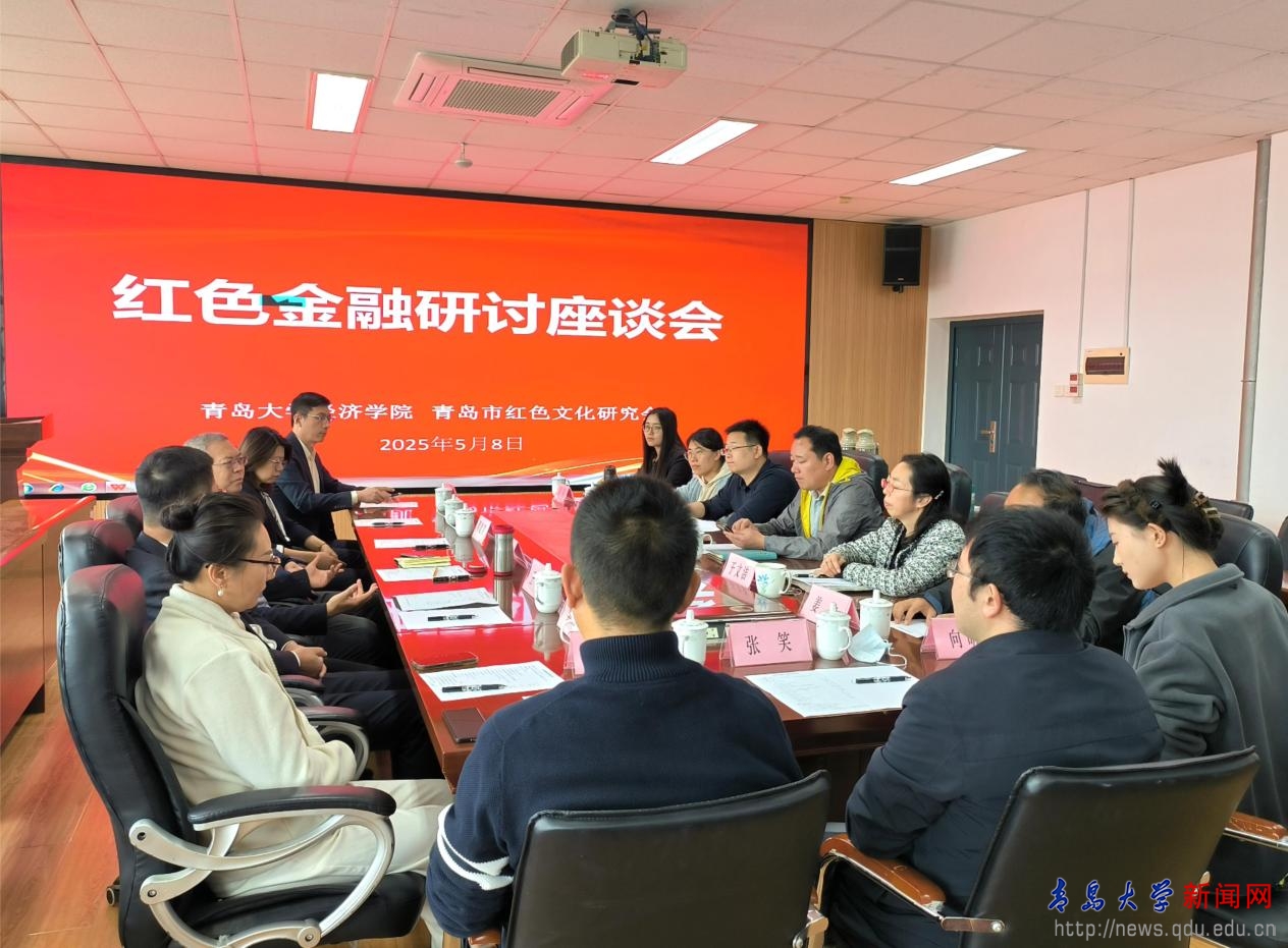 新闻网讯 5月8日下午,由经济学院与青岛市红色文化研究会联合举办的红色金融研讨座谈会在金家岭校区3号实验楼307会议室举行。会议聚焦红色金融历史研究、文化传承与高校育人体系创新,旨在推动产学研深度融合,为新时代金融人才培养注入红色基因。青岛市红色文化研究会创始人张辉、外联处长李兰;国家金融监管总局调研员周建青,太平财险青岛分公司总经理王京等金融业界代表参与研讨。我校经济学院党委书记邱建国、副院长徐保昌、金融系主任姜伟等教师代表参加会议。座谈会由经济学院党委副书于文洁主持。