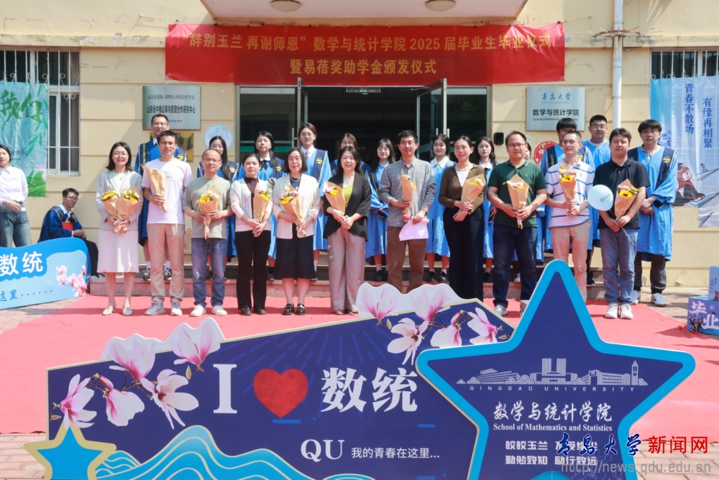 新闻网讯 5月28日上午,数学与统计学院在浮山校区励行楼前举办“辞别玉兰 再谢师恩”2025届毕业生毕业仪式暨易蓓奖助学金颁发仪式,学院领导、校友代表、教师代表参加活动。仪式由数学与统计学院院长刘奎主持。