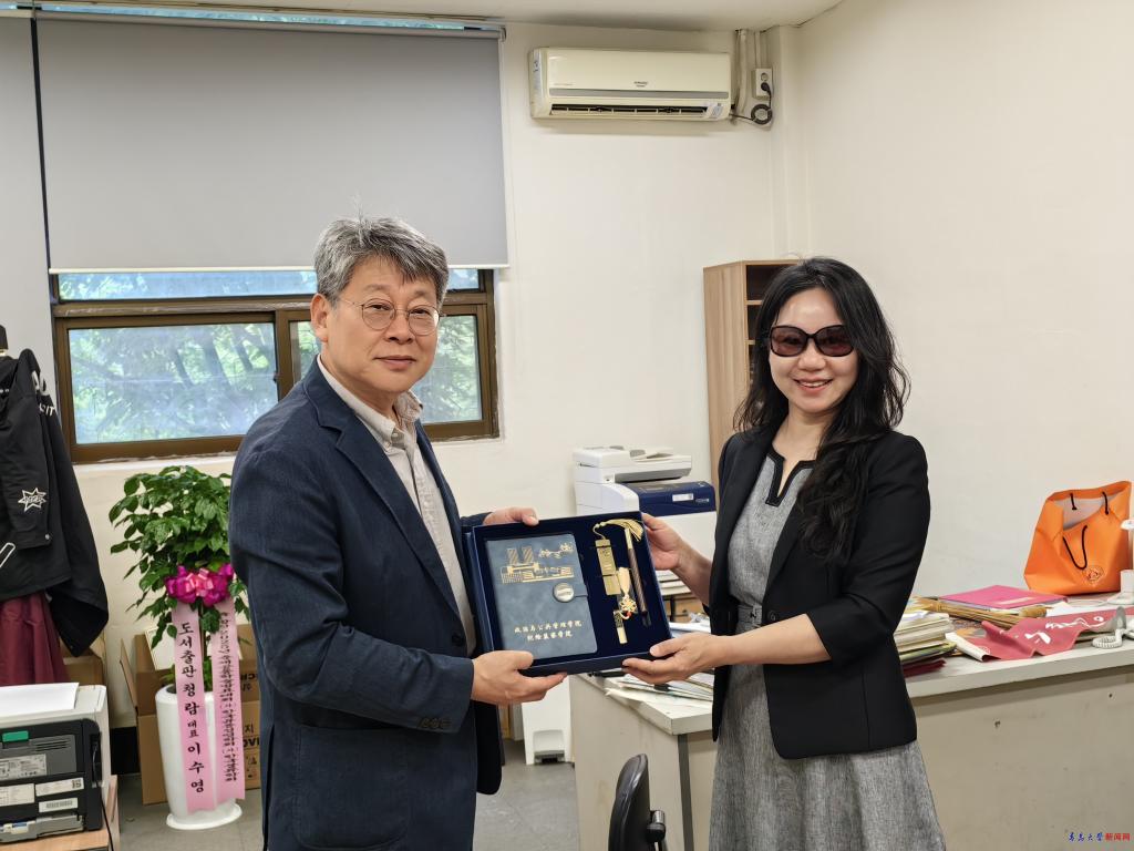 访问期间,韩庆娜和政治与公共管理学院欧斌教授还与我校客座教授、前韩国驻青岛总领馆领事韩亨东先生进行座谈。