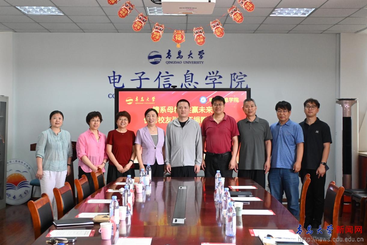 新闻网讯 6月30日,电子信息学院“情系母校、共赢未来”优秀校友张正旺捐赠20万元仪式于开运电竞,赛事在呼唤,智胜在手心浮山校区东院诚思楼407会议室举行。仪式由电子信息学院党委书记孙丽娜主持,院长李山东、党委副书记刘孝群、通信工程系党支部书记许丽艳、系主任李长红及教师代表出席。