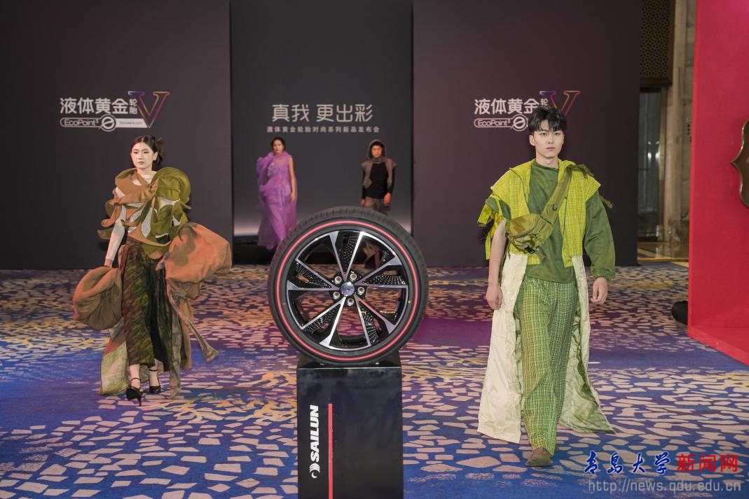 新闻网讯 6月28日,纺织服装学院与赛轮集团在青岛市服饰文化研究会的协助下,合力在“液体黄金轮胎时尚系列”新品发布会上,呈现了一场颠覆传统的科技美学盛宴。学院服装与服饰设计专业学生的优秀设计作品,通过表演专业学生的精彩演绎,为赛轮集团七款革命性彩色轮胎设计理念打造主题时装系列,将抽象概念转化为可穿戴艺术语言,在工业设计与时尚艺术深度融合下,展现时尚美学与现代科技的共生共荣。