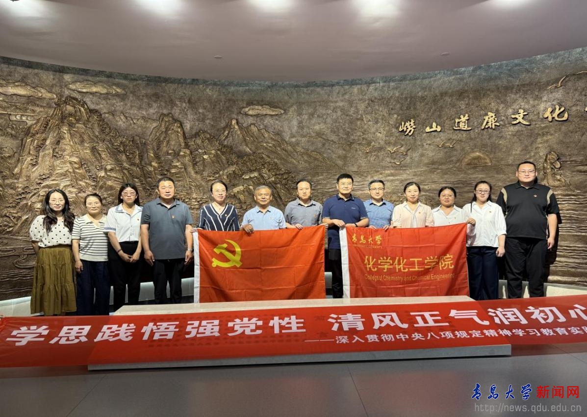 新闻网讯 为深入贯彻中央八项规定精神学习教育,强化党员干部廉洁自律意识,7月1日下午,化学化工学院党委联合物理科学学院党委、数学与统计学院党委,组织党员干部赴崂山道廉文化馆,开展“贯彻中央八项规定精神学习教育”专题活动。三个学院党委领导班子成员、各党支部书记及全体辅导员参加活动。