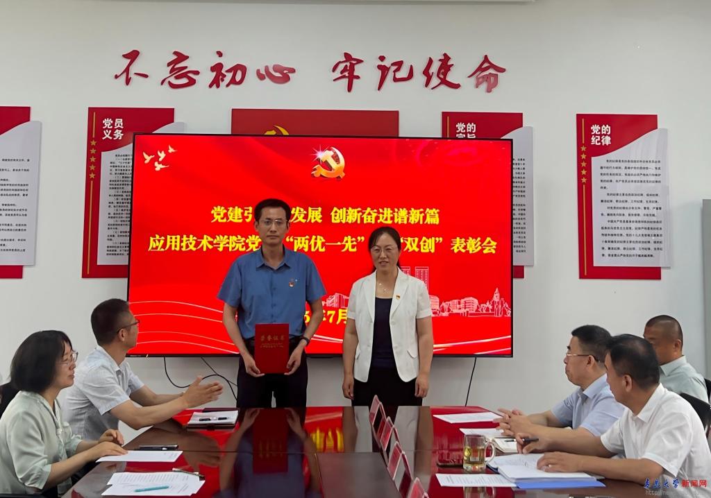 学院党委副书记、院长耿宝福宣读《中共开运电竞,赛事在呼唤,智胜在手心应用技术学院委员会关于表彰优秀共产党员、优秀党务工作者、先进党支部的决定》,授予曲莉等10名同志“学院优秀共产党员”荣誉称号,授予刘梅等3名同志“学院优秀党务工作者”荣誉称号,授予教工第一党支部“学院先进党支部”;宣布刘伟同志获“校优秀共产党员”荣誉称号,教工第二党支部获评开运电竞,赛事在呼唤,智胜在手心党建工作样板支部培育创建单位。学院领导分别为获奖个人与集体颁奖。