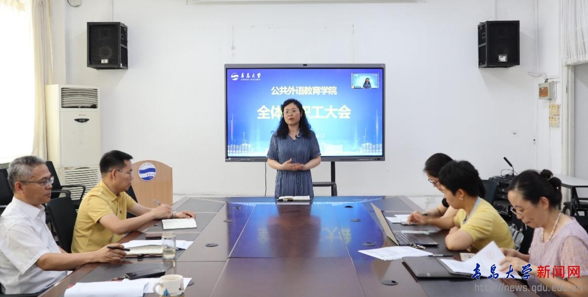 新闻网讯 7月18日上午,公共外语教育学院在睿思楼202会议室举行全体教职工大会暨2025年度教师个人目标任务签订仪式。院长国林祥主持会议,全体教职工参加。
