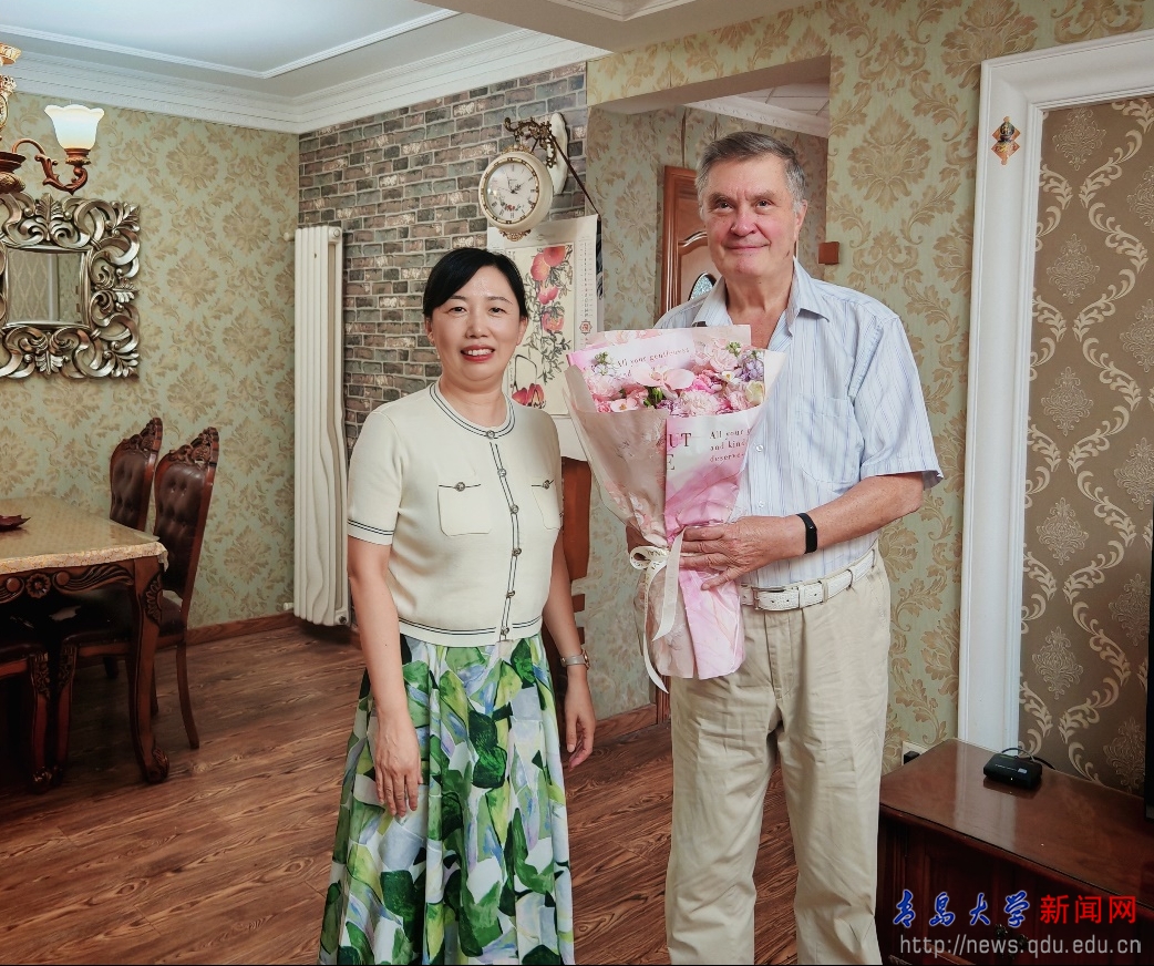 新闻网讯 在第41个教师节之际,9月10日下午,电子信息学院党委书记孙丽娜带着全院师生的诚挚祝福,代表电子信息学院领导班子专程看望慰问乌克兰国家科学院院士莱昂尼德·切尔诺高尔,向他致以节日的问候与崇高敬意,感谢他为电子信息学院发展作出的重要贡献。