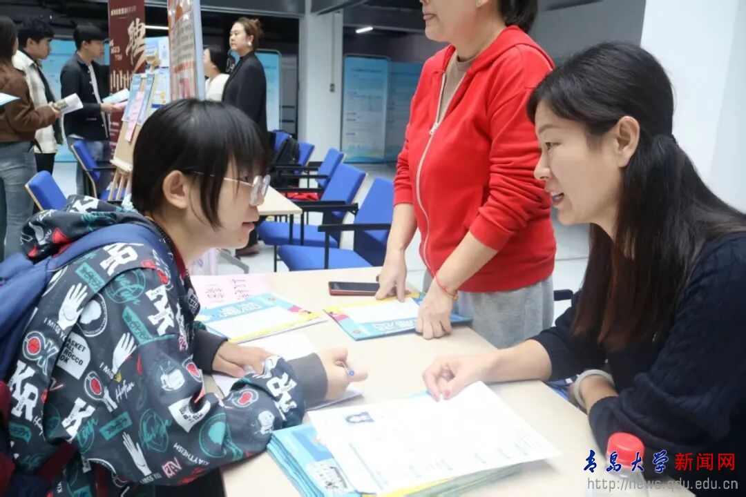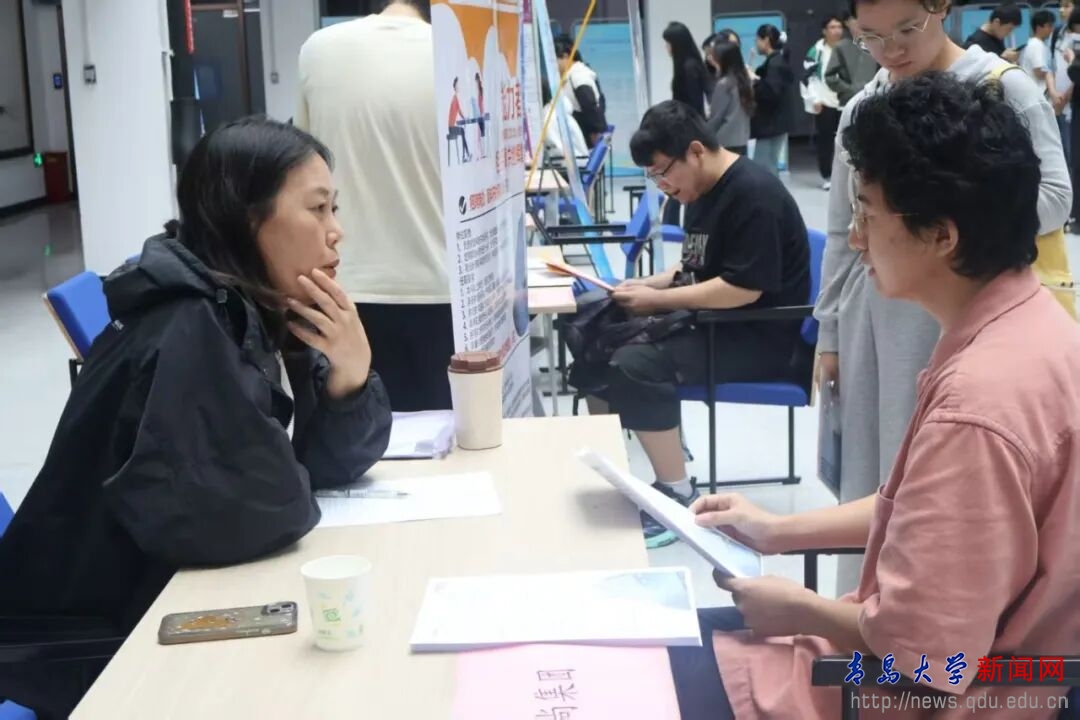 新闻网讯 10月11日下午,纺织服装学院2026届毕业生就业供需双选会(第一场)在新纺织大楼B座一层中庭举办。本次双选会共吸引西默会展会务集团、迪尚集团、三阳集团、威海凯华、威海思来、广州希音、烟台明远、即发集团等17家知名企业参与,涵盖纺织工程、服装设计与工程、轻化工程、服饰与服装设计等多个专业领域,为不同专业背景的毕业生创造了丰富的就业选择空间。纺织服装学院党委书记李凌云、院长许长海参加本次就业供需双选会,并在现场与企业代表交流。