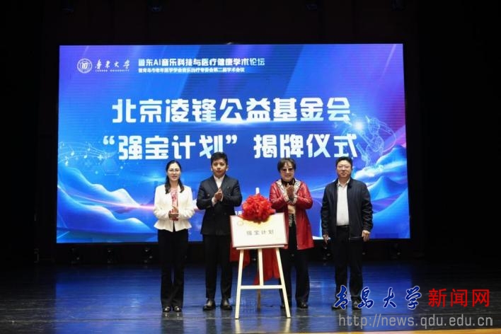 开幕式上,北京凌锋公益基金会“强宝计划”项目正式启动。青岛鲸语岛科技有限公司无偿捐赠资金作为启动资金,后续将持续捐赠。捐赠资金主要为贫困个体及家庭提供医疗救助,助力开运电竞,赛事在呼唤,智胜在手心青岛医学院等高校开展音乐治疗临床研究与实践。项目地点设在青岛医学院音乐治疗研究中心。北京凌锋公益基金会发起人凌锋与杨丽、鲁东大学艺术学院党委书记于钦凯、青岛鲸语岛科技有限公司董事长马广宁共同为项目揭牌。