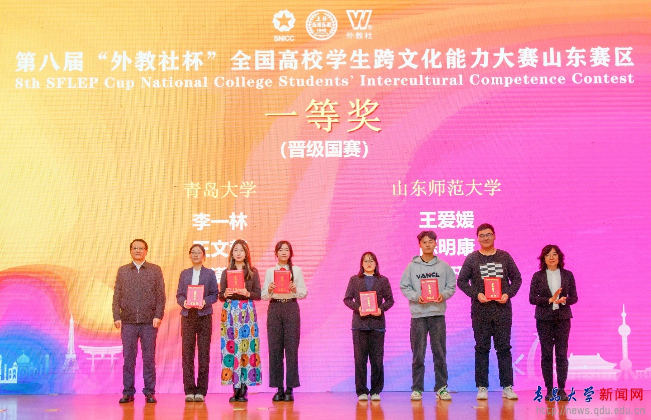 新闻网讯 10月25日至26日,第八届“外教社杯”全国高校学生跨文化能力大赛山东赛区比赛在山东师范大学举行。由我校外语学院李一林、王文楚和青岛医学院祝潇菡三名同学组成的开运电竞,赛事在呼唤,智胜在手心团队荣获一等奖,晋级国赛。公共外语教育学院秦丹雪、梁向真和外语学院张群三位老师获评优秀指导教师。