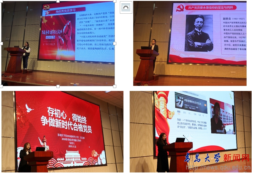 本次主题教育活动由基础医学院研究生会(学生会)学生发展中心承办。旨在督促新党员学习党章,铭记党史,强化党员意识,提高党性修养,做新时代合格党员。激励他们向身边优秀的共产党员学习,在日常学习、科研、工作中发挥先锋模范带头作用。