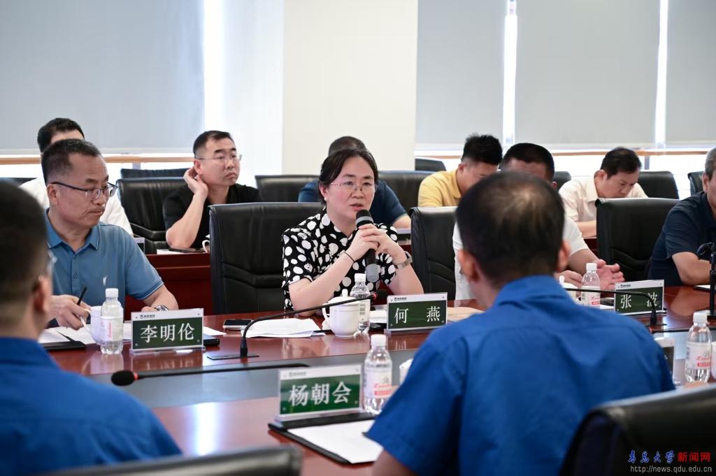 座谈会开始前,青特集团总裁纪建奕会见了何燕一行。何燕表示,学校将围绕青特集团需求组建专项团队并明确负责人,推进后续科研及成果转化工作。她强调理论与实践同等重要,相关团队将深耕具体领域,全程参与“理论-技术-产品-商品”全链条成果转化,未来学校也将更聚焦市场和企业需求,优化人才培养方向并强化校企合作,做到理论与实践“两手抓、两手都要硬”。同时,何燕回顾了双方合作渊源,包括共建“青特班”、山东省工程中心及重点实验室,肯定青特集团作为校友企业的标杆地位,并提出三大未来合作方向:一是深化人才培养,拓展硕博联合培养;二是聚焦新能源汽车板块,整合人才共建研发平台;三是推动长期技术合作,目标孵化新产业。她还建议企业以资金撬动资源,学校整合学科力量强化协作,通过系统化策划与开发,构建高效的高校资源转化长效机制。