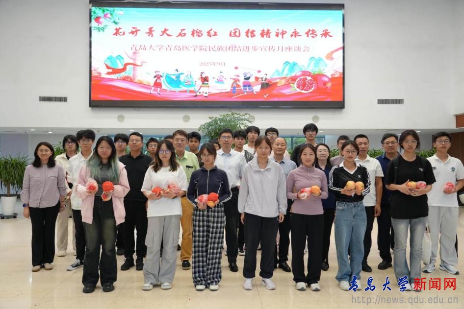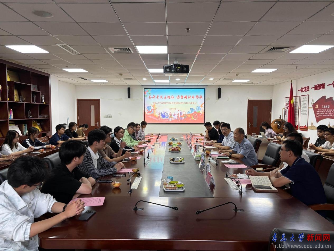 新闻网讯 近日,青岛医学院民族团结进步宣传月座谈会在浩园医学教育综合楼215会议室举行。校部机关党委书记、党委统战部常务副部长、台港澳事务办公室主任吴鹏,青岛医学院常务副院长李冰,学院党委副书记刘学,优秀校友、红石榴(枣庄)健康产业有限公司董事长徐华东等出席活动。座谈会由青岛医学院党委常务副书记王有全主持,1名台湾学生和20余名少数民族学生代表共同参会。