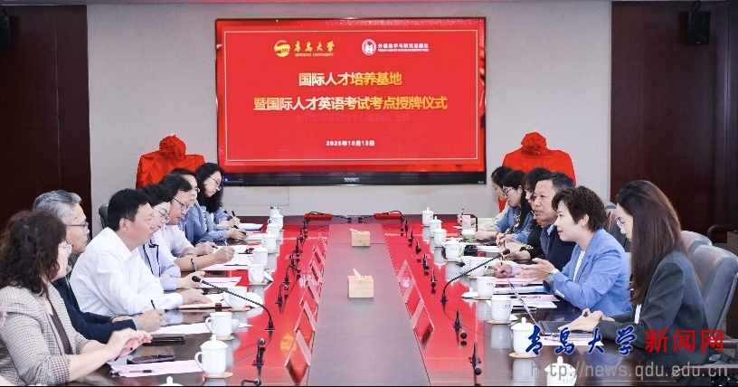 新闻网讯 10月13日,我校与北京外国语大学中国外语测评中心共建国际人才培养基地暨国际人才英语考试考点授牌仪式在会议中心302会议室举行。校党委常委、副校长陈涛,外研社高等营销中心副总监王悦,外研社高等营销中心华东大区总经理李洪旺,公共外语教育学院党委书记甄淑华,外语学院副院长王薇出席仪式。仪式由公共外语教育学院院长国林祥主持。