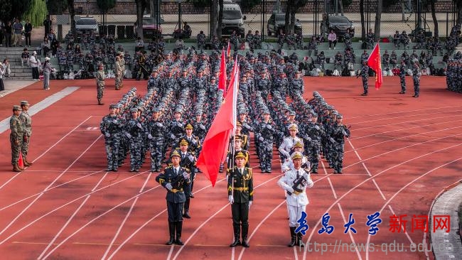丰富教育实践,知行合一深耕报国志。校学生处组织开展军训阅兵演习等活动,让新生在实践体验中感悟国防精神;举办“爱我国防”大学生演讲比赛,我校环境与地理科学学院退役大学生王嘉仪获2025年“爱我国防”山东省第九届大学生主题演讲比赛学生组第一名;组建“国防之声”大学生国防教育宣讲团,面向学生宣讲实践见闻和感悟;邀请校友代表、纪念中国人民抗日战争暨世界反法西斯战争胜利80周年阅兵仪式民兵方队队员、纺织服装学院2023届赵婧慧返校在开学典礼上为全体新生做交流分享。