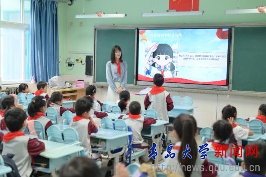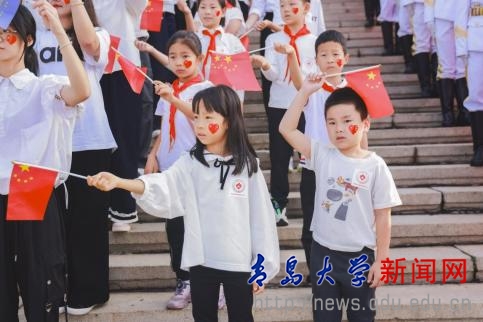推进一体化建设,校地共建厚植家国情。马克思主义学院组织学生赴青岛市宁夏路第二小学,以“长征精神”为主题,为该校刚刚加入中国少年先锋队的同学们上一堂思政课,大学生们通过讲述长征故事、演绎红色情景剧、互动问答等形式,引导小学生深刻理解长征精神的时代内涵,让红色基因真正融入成长血脉。校团委举行“奋进强国路,阔步新征程”庆祝中华人民共和国成立76周年升国旗仪式,中国关工委健体中心“阳光下一代”、山东工作组直属德萌志愿服务中心志愿者、青岛二中分校志愿班级志愿者,及学校师生代表1200余人参加仪式。小学、初中、高中的学生志愿者与青大学子共同站在一面旗帜下,在庄严肃穆的仪式中感受爱国精神的代际传承,在仪式中厚植家国情怀。