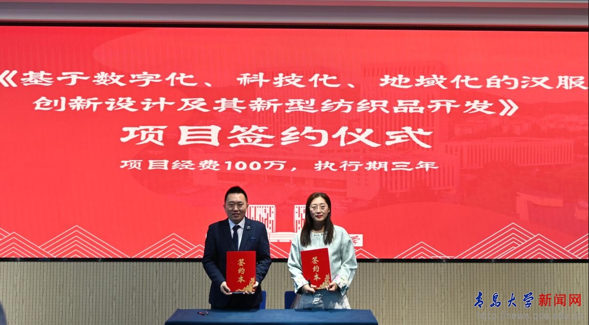 活动现场,校团委与共青团菏泽市委签署“青鸟合作”协议,共青团菏泽市委为菏泽藉学生张照阳颁发“青鸟驿站”站长聘书。纺织服装学院与山东一山一水艺术文化传播有限责任公司签署了《基于数字化、科技化、地域化的汉服创新设计及其新型纺织品开发》项目合同,项目经费100万元,执行期三年,将致力于汉服创新设计与新材料研发,推动产业升级。