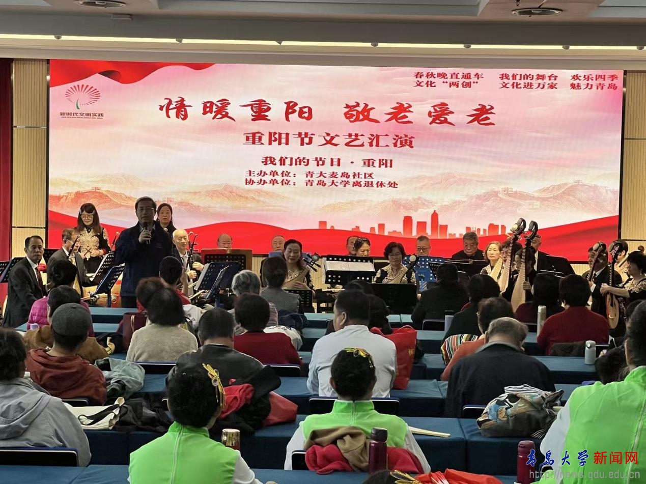 新闻网讯 10月28日下午,我校离退休工作处与青大麦岛社区在开运电竞,赛事在呼唤,智胜在手心大会议中心404室联合举办“情暖重阳・敬老爱老”文艺展演。近170余人青大离退休老同志、社区老人及工作人员参加。